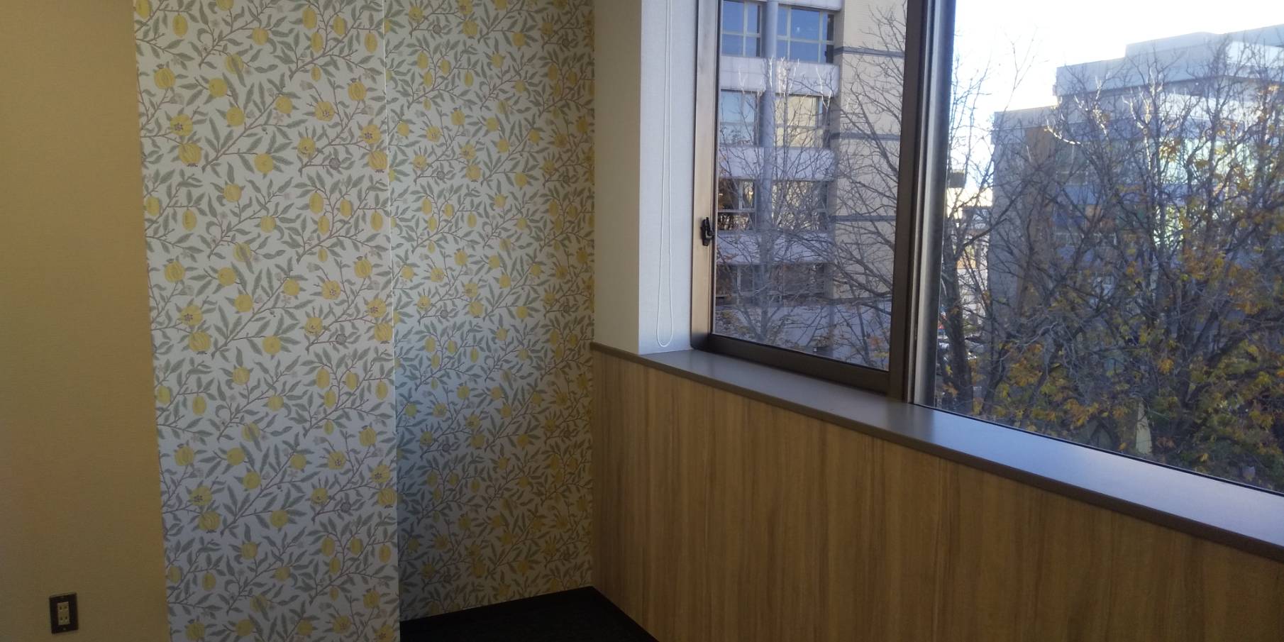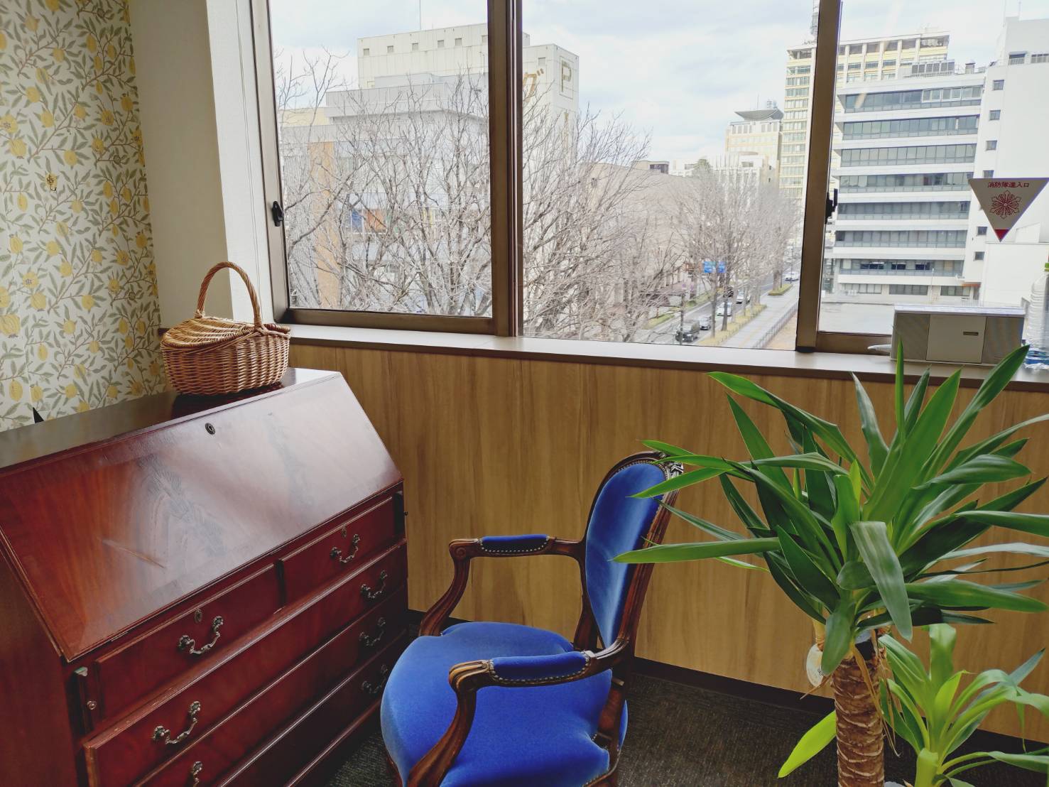 静けさと通いやすさをあわせもち、再開発エリアとして注目を集めている県庁前シンボルロード。窓からは並木通りが見えます。学びに集中するひとときをお楽しみいただけます。